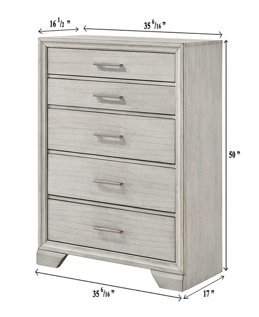 CROWNMARKMaximize your storage without sacrificing style with the Crown Mark Jayme 5 Drawer Chest. Finished in a chic White Mist tone, this tall chest provi...