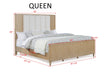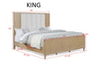 Command attention in your bedroom with the luxurious and spacious Crown Mark Kira Bedroom Set. Featuring the stunning Cerused Natural finish, this Bedroom centers around the comfortable upholstered panel bed, perfectly complemented by the matching dresser, mirror, and nightstand. The durable faux stone tops on the case goods and the smooth-gliding drawers combine high style with practical function. This set is the perfect choice for those seeking to create a tranquil, organized, and thoroughly modern sleeping environment.