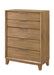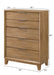 Bring the warmth and brightness of natural materials into your bedroom with the Crown Mark Honey 5-Drawer Chest. This tall, striking piece is finished in a Natural Wood tone that highlights the beautiful, subtle wood grain, perfectly blending contemporary lines with a light, rustic aesthetic.