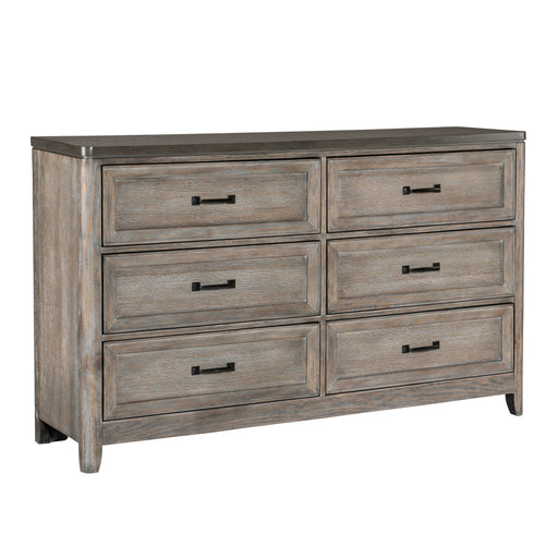 With its clean-lined look and modern attitude, this dresser is a fresh style awakening. A warm charcoal hue over replicated oak grain easily comple...