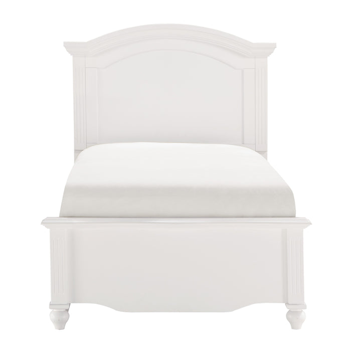 Your child’s bedroom is their space to grow, learn and play. The elegant, yet whimsical, styling of the Meghan Collection will provide the platform from which they will enjoy those experiences for years to come. Design elements that lend to a traditional look include, white finish, routed pilasters, turned feet and curved base rails. Your child will love the twin panel bed, with its classic look providing stylish accent to their space. 44 x 81.25 x 48.75H