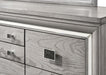 This elegant Soft Gray Queen Bedroom Set offers a sophisticated, contemporary aesthetic perfect for the modern home. The set's clean lines and neutral light gray finish provide a tranquil yet stylish foundation for any decor. Accented with sleek brushed nickel hardware, this furniture group is built for both durable use and contemporary appeal.