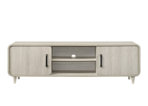 Express your farmhouse style with this TV stand. Its wispy white finish over replicated oak wood grain is a delightful change from the ordinary. Cl...